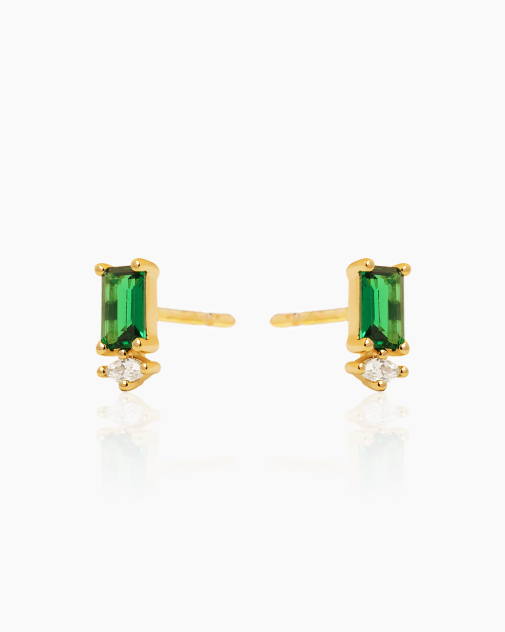 Step into your strength. These intricate gold studs showcase brilliant green cubic zirconia stones in a compelling design, offering an elegant, classic sparkle with an edge.