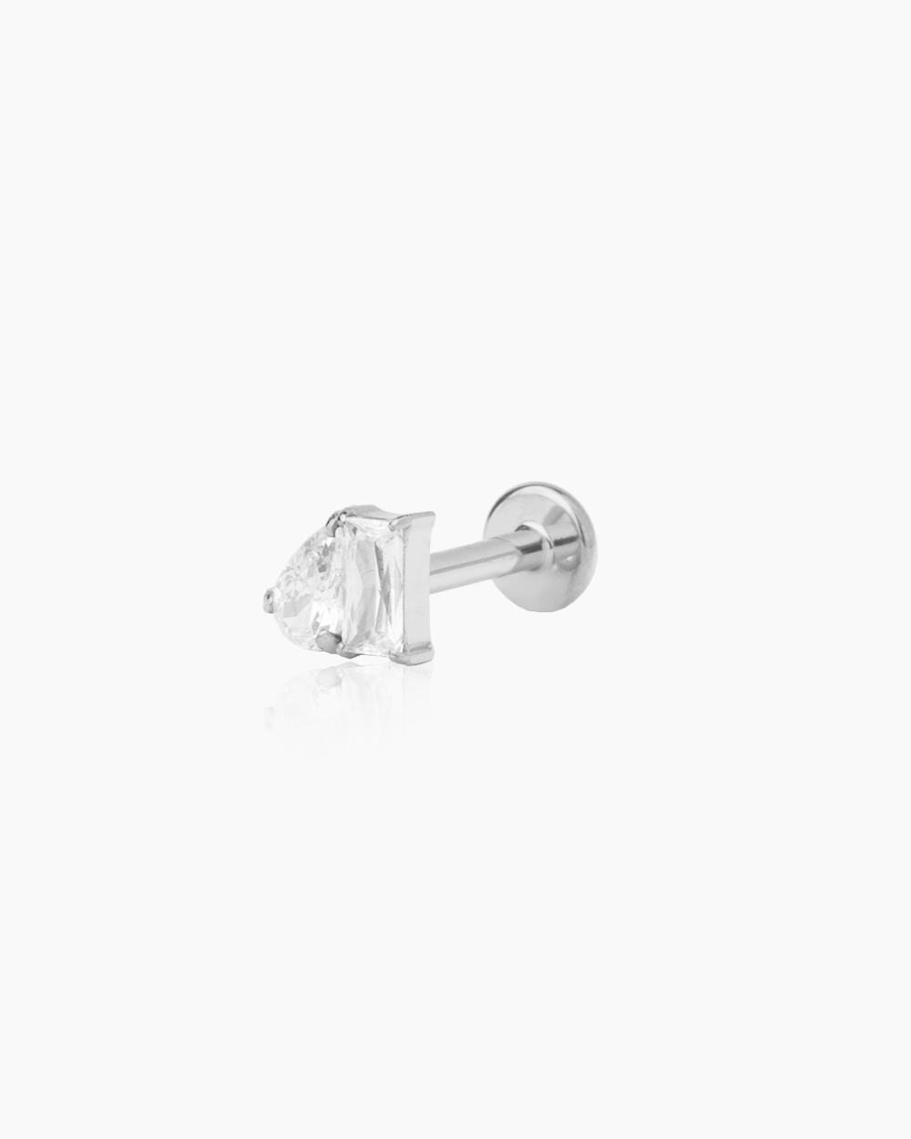 The Bina Flatback Studs showcase a unique combination of pear and emerald cut cubic zirconia, perfect for a modern ear stack. This stylish and distinctive stud is comfortable for all-day wear in any piercing. Available in both gold and silver finishes.