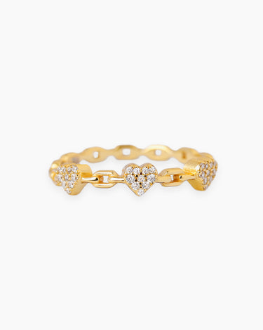 Sometimes, all you need is something sweet and dainty. Set aside your plain gold bands and shine with the Alexis Gold Ring. A chain styled band adorned with dainty hearts, it’s the perfect finishing touch for all your looks.