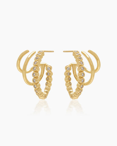 The Angelina Hoops make it look like you're rocking three different-sized hoops, one with shining bezel-set stones that catch the light every time you move. With these in your collection, you'll make a statement wherever you go.