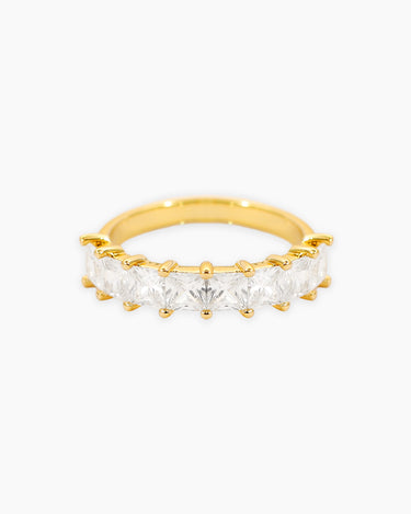 Amp up your ring collection with the Charlotte Ring. Decked out with a radiant row of princess-cut crystals, this eye-catching piece makes a dazzling declaration.
