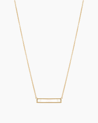A piece with coastal charm, this timeless design stars a stunning Mother of Pearl bar pendant on a gold chain. Get the gleam of the sea with the Cora Necklace.
