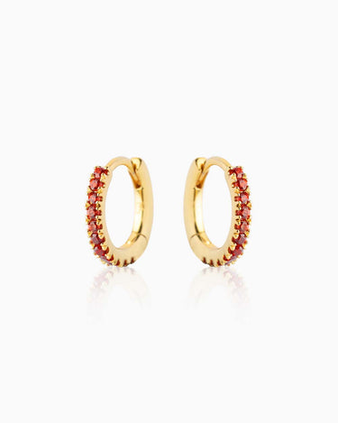 The Sienna Gold Huggies feature a warm, rich sienna-colored cubic zirconia setting on a delicate gold hoop. These huggies add a touch of autumnal warmth to your look, perfect for adding a cozy vibe.