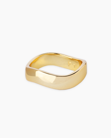 The Whitney Gold Ring is a unique and eye-catching gold band ring with a thick curved design. A bold and modern piece, this ring is set to make a statement.
