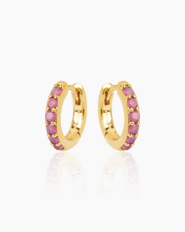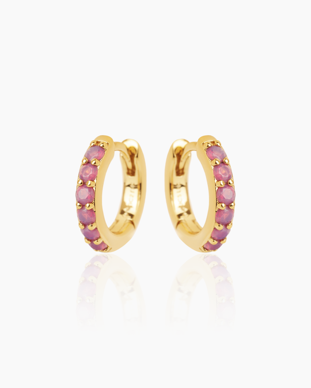 Pop with color and style. These eye-catching gold huggies are fully paved with vibrant lab-grown opal stones, offering a rich, glamorous sparkle that's perfect for stacking.